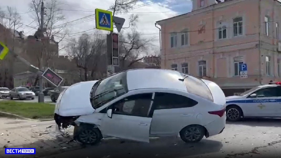 Томич снес светофор на пересечении Красноармейской и Карташова