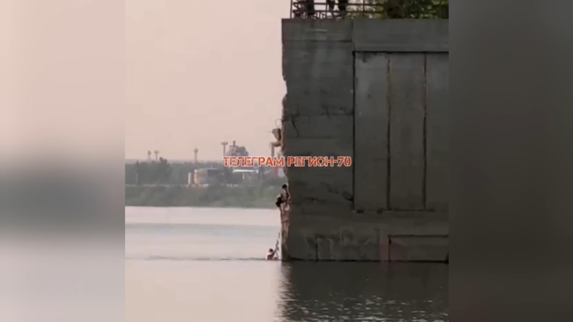 В Томске дети прыгают и лазят на разрушенной пристани